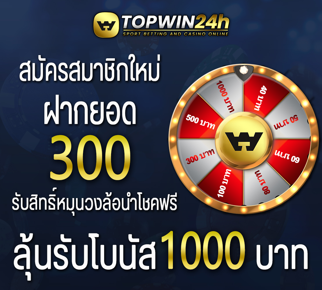 - สมัครสมาชิกใหม่ ฝากยอด 300 บาทขึ้นไป รับสิทธิ์หมุนวงล้อนำโชคฟรี ลุ้นโบนัสสูงสุด 1,000 บาท